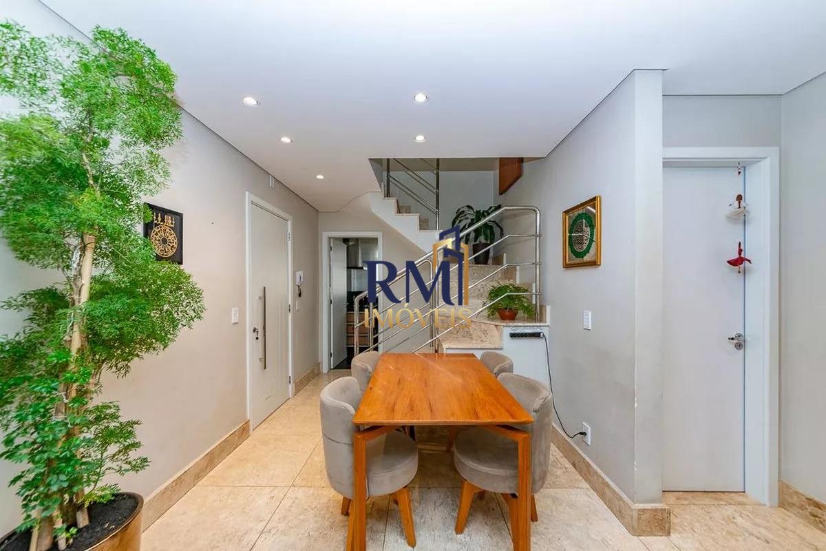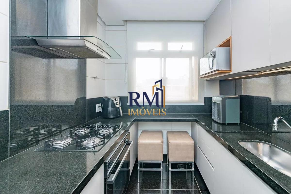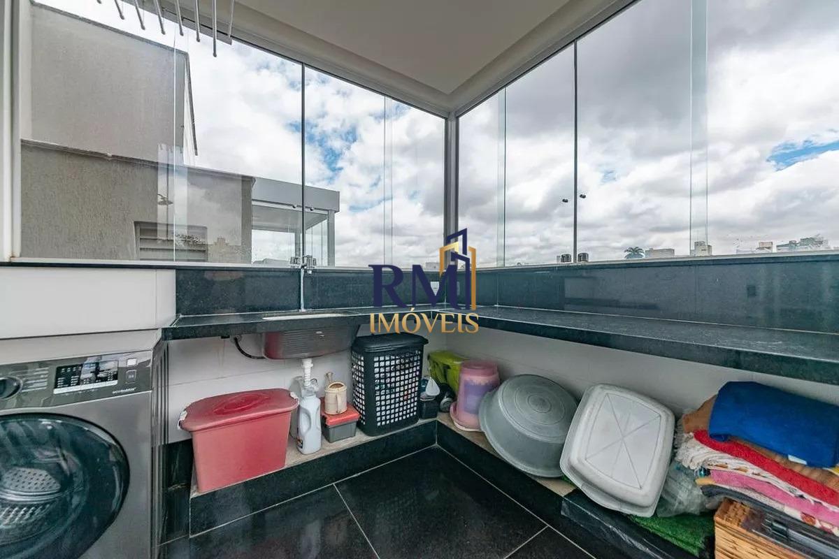 COBERTURA DUPLEX: 116m², com vista livre e panorâmica! Acabamento de alto padrão! Teto com rebaixamento em gesso em todo o apartamento. Iluminação planejada. Sol da manhã e da tarde. Telas de proteção nas janelas. Dois(2) quartos sendo um deles suíte e closet. piso em laminado de madeira, ar condicionado split, janelas em alumínio com venezianas integradas, armários embutidos. Duas(2) salas com piso em mármore bege Bahia, janelas amplas (esquadrias em alumínio). Escada interna, piso em mármore bege Bahia, corrimão em inox. Lavabo com piso e bancada em mármore bege Bahia. Cozinha, dois(2) banheiros e área de serviço com piso e bancadas em granito preto, box Blindex, armários da cozinha de alto padrão planejados pela Lidea. Fechamento da área de serviço em Blindex. Área externa do terraço com piso em cerâmica.