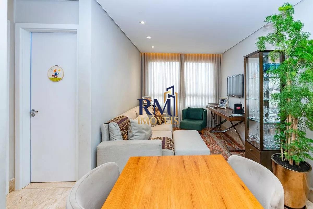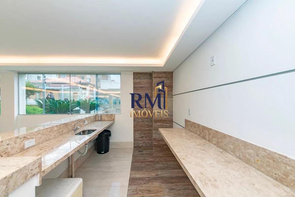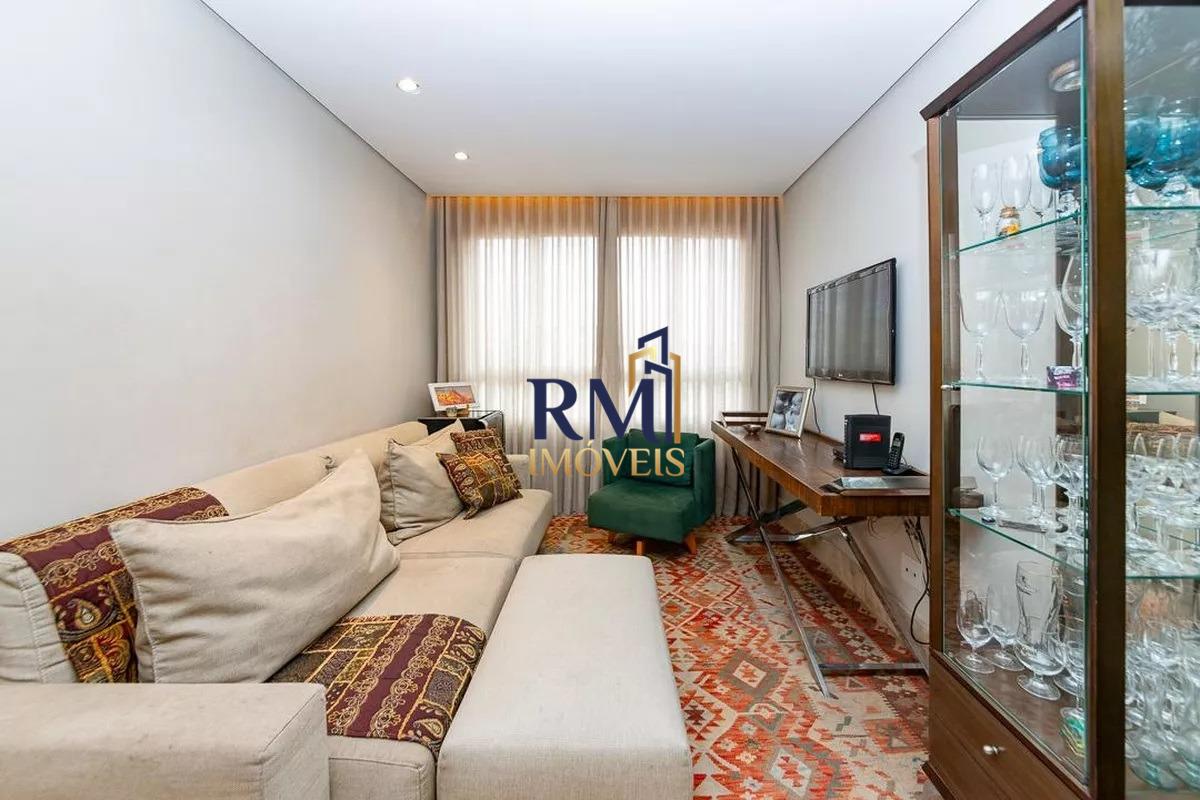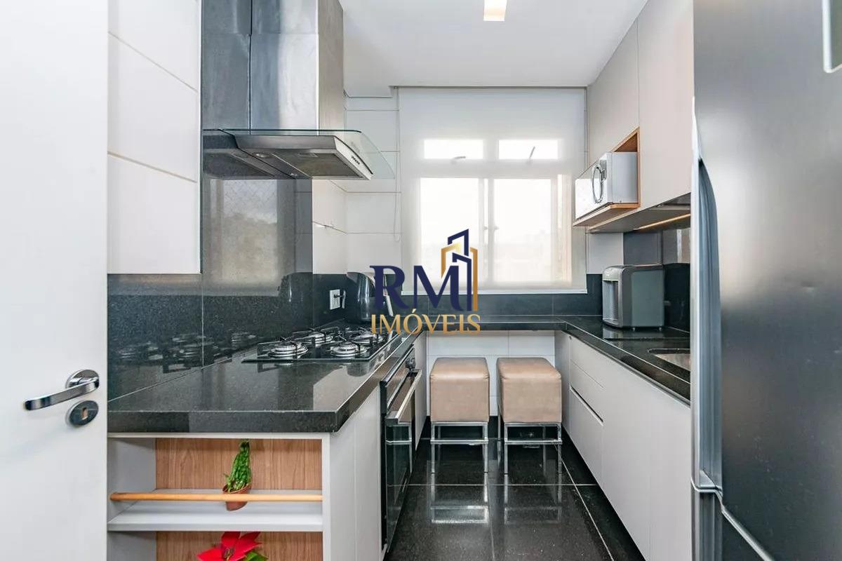 COBERTURA DUPLEX: 116m², com vista livre e panorâmica! Acabamento de alto padrão! Teto com rebaixamento em gesso em todo o apartamento. Iluminação planejada. Sol da manhã e da tarde. Telas de proteção nas janelas. Dois(2) quartos sendo um deles suíte e closet. piso em laminado de madeira, ar condicionado split, janelas em alumínio com venezianas integradas, armários embutidos. Duas(2) salas com piso em mármore bege Bahia, janelas amplas (esquadrias em alumínio). Escada interna, piso em mármore bege Bahia, corrimão em inox. Lavabo com piso e bancada em mármore bege Bahia. Cozinha, dois(2) banheiros e área de serviço com piso e bancadas em granito preto, box Blindex, armários da cozinha de alto padrão planejados pela Lidea. Fechamento da área de serviço em Blindex. Área externa do terraço com piso em cerâmica.