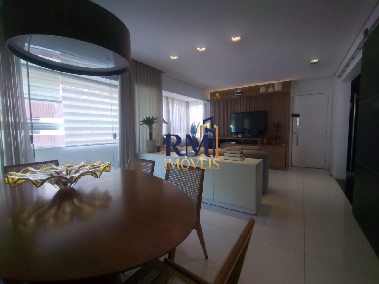 PRÉDIO: Revestido em pastilhas de cerâmica, excelente acabamento, portão eletrônico, interfone, portaria 24 horas, circuito interno de TV, sistema de alarme de segurança, hall social decorado, acabamento de luxo, área de lazer completa com salão de festas, salão de jogos, espaço gourmet, academia, espaço kids, sala de massagem, sala de cinema, piscina, dois(2) elevadores e três (3) vagas de garagem cobertas, sendo duas(2) vagas alinhadas e uma(1) vaga livre. APARTAMENTO: 90m², mobiliado. Sala para 2 ambientes, acabamento de luxo, piso em porcelanato, rack de televisão, área de varanda, ótima luminosidade no ambiente. Três(3) quartos com armários, sendo um quarto convertido em home office, ar condicionado instalados nos quartos, piso em laminado flutuante. Duas(2) suítes, sendo uma das suítes com closet, banhos-suíte com armários, bancada e piso em granito, box blindex. Cozinha com armários planejados, acabamento moderno, bancada e piso em granito preto, área de serviço e banheiro de serviço.