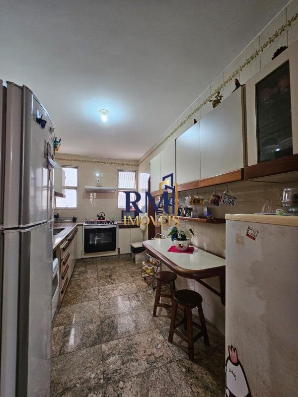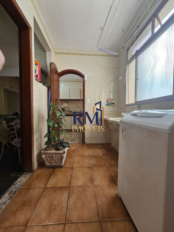 Cozinha ampla com despensa, área de serviço com dois tanques, quarto de serviço e banho de serviço.