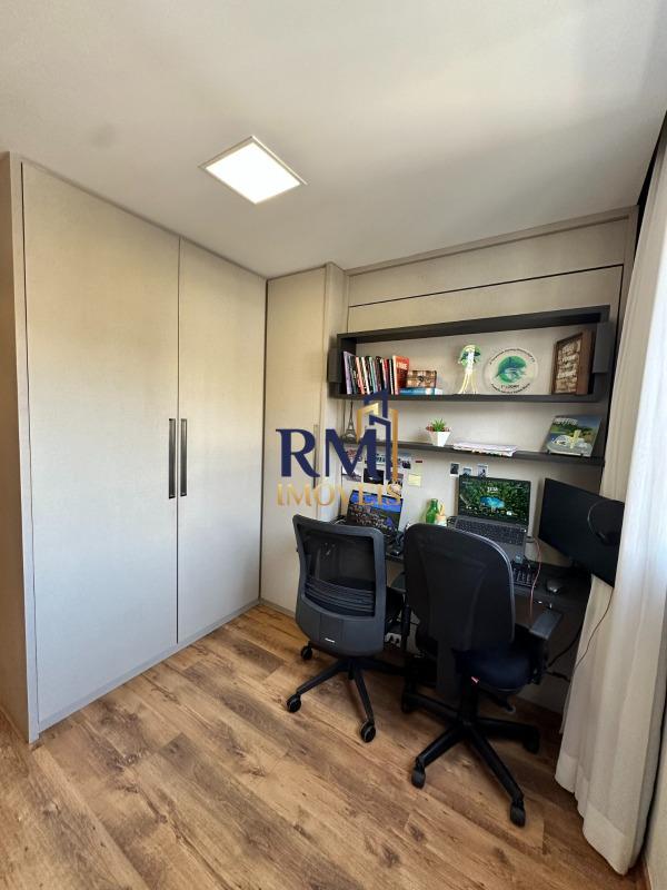 APARTAMENTO: Primeiro andar possui dois(2) quartos, ambos com armários embutidos e piso vinílico. O quarto principal possui um amplo closet. O segundo quarto, que também funciona como escritório, possui uma cama de casal embutida. Banheiro social com box blindex, piso em porcelanato, armários sob a pia e um espelho grande. A sala de TV, espaçosa e decorada com móveis planejados, tem piso em porcelanato e projeto de iluminação, assim como todo o apartamento, que também conta com teto rebaixado em gesso.